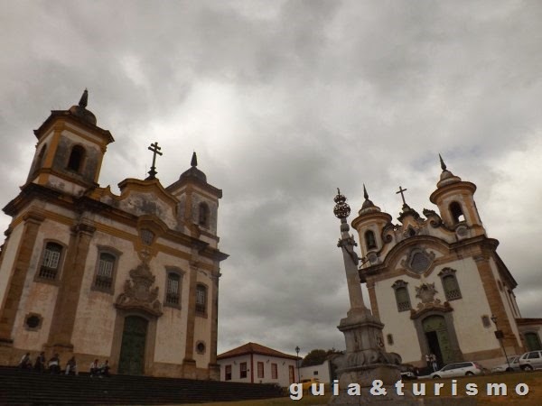 As duas igrejas uma ao lado da outra. Construídas quase ao mesmo tempo e com obras dos grandes nomes do barroco mineiro: Aleijadinho e Mestre Ataíde. No dia que visitei a cidade não estava podendo entrar nas igrejas.