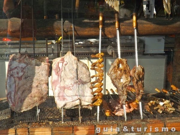 Praça de alimentação com comida campeira.