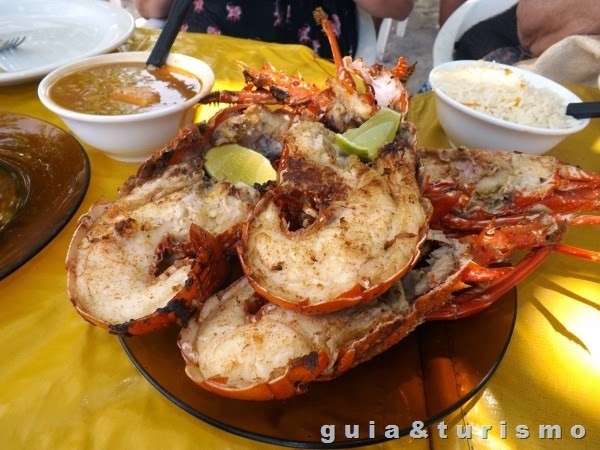 Pronto, o grupo resolveu ir à praia, mas não para caminhar e sim degustar a lagosta. Confesso que não fiquei entusiasmado com a ideia, nunca ouvi falar da lagosta e queria ir logo para a outra praia onde estava a outra parte do grupo. Mas na condição de Guia de Turismo fui acompanhando.